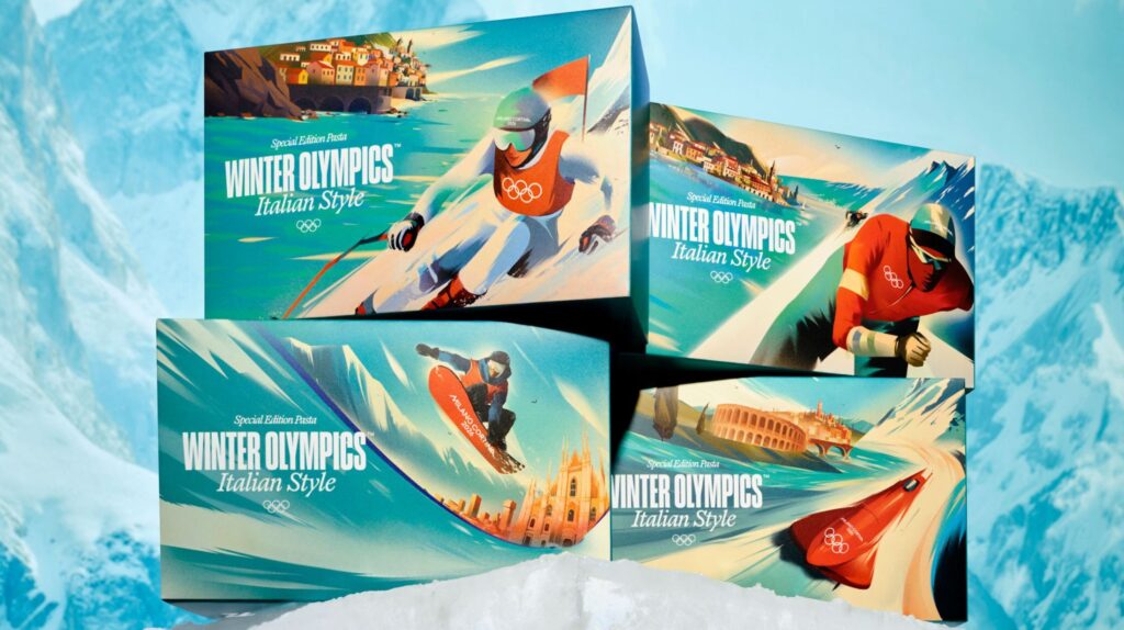 De pasta wordt geproduceerd van Italiaans graan en is opgezet als tijdelijk product en wordt gepresenteerd in vier verschillende dozen, elk gekoppeld aan een wintersportdiscipline en een karakteristiek Italiaans landschap. De illustraties zijn ontworpen door de Italiaanse illustrator Marianna Tomaselli. In de beeldtaal wordt bewust verwezen naar klassieke Olympische affichekunst, waaronder posters van Cortina 1956 en het grafische werk van Alex Walter Diggelmann uit eerdere Olympische kunstcompetities.